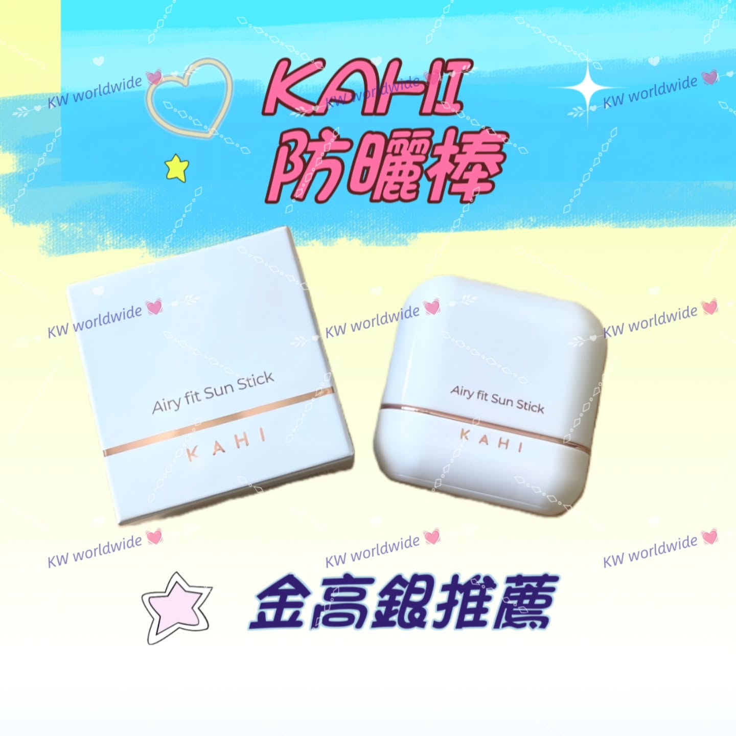 韓國KAHI 輕透防曬抗皺水凝棒 Airy Fit Sun Stick SPF50+ PA++++ 14g 新包裝防曬一年四季都需要用,但如何選擇一支令你愛不釋手的防曬呢⁉️⁉️推薦給你們🤗一支亮白、抗老化、防曬三重功能的護膚化妝品🩷可修正肌膚缺陷‼️能防水和抗汗水、皮脂,形成保濕膜,阻隔肌膚水分蒸發💦保持肌膚潤澤、防水防汗、提亮膚色、淡化細紋,還可以抗皺💥💥其實很多防曬霜的黏膩感和使用後留下的油膩感,是許多人不喜歡使用的原因😵💫但是「韓國KAHI 輕透防曬抗皺水凝棒 Airy Fit Sun Stick」一搽上臉似乎只剩下一層空氣般的輕盈感,超有感的舒適防曬抗皺水凝棒❄️❌️ 不會留下白色遮蔽感,能擁有自然無瑕的肌膚。它就如空氣般,沒有黏膩感、沒有厚重感、沒有沉重感。自然地帶有亮澤的肌膚,柔軟、融化、絲絨般光滑的自然素顏妝感。💦 水潤增強專利技術應用:融入專業知識,以抵抗汗水和水導致的SPF值下降!✅️ 專屬技術應用:polymeric High-Temperature TECH 高溫高分子技術預防護膚屏障在陽光下輕易崩塌,即時皮脂分泌增加也不會影響功效!與肌膚相融的粉狀柔軟質地。即使在妝容上也有如絲絨般柔軟細緻,柔軟如絨毛的貼附感,完全不會卡粉!生產地:韓國